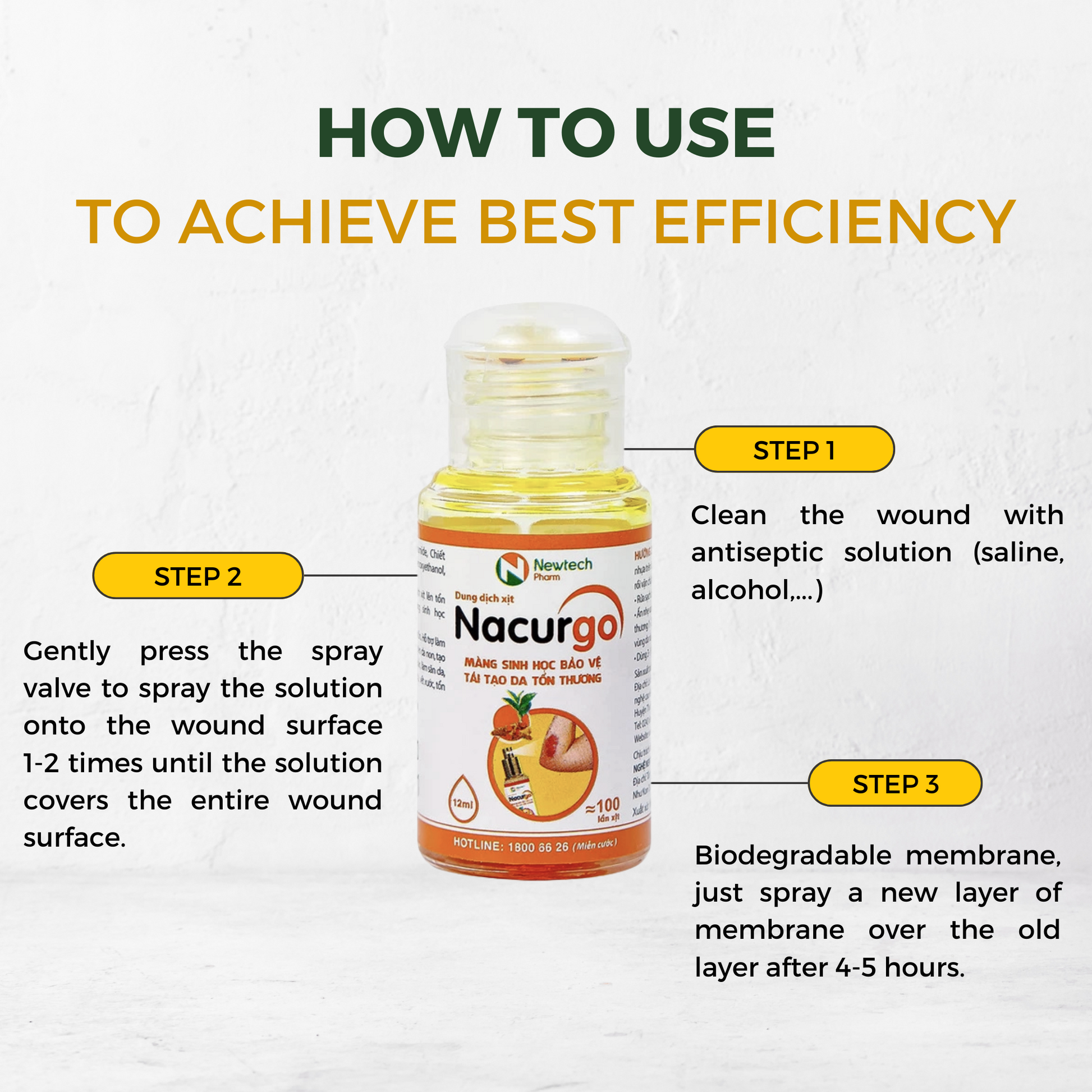 - Step 3: Biodegradable membrane, just spray a new layer of membrane over the old layer after 4-5 hours.